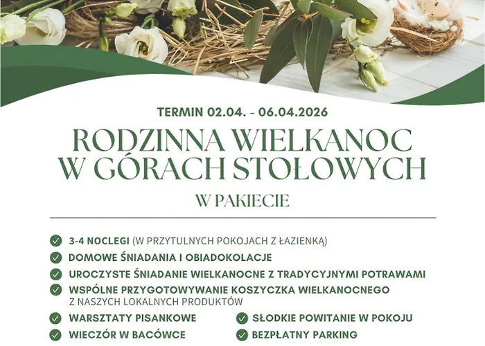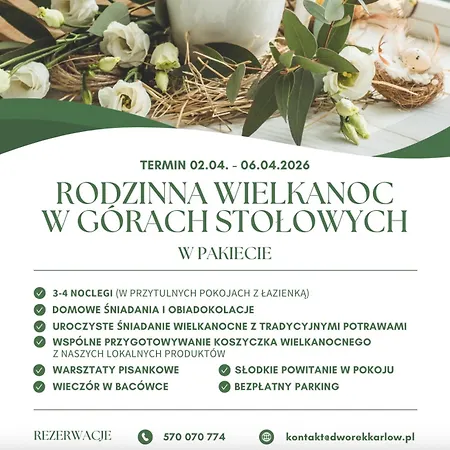 Ofreciendo zona de pícnic y zona de juegos, el hotel Dworek Karłów, de 3 estrellas, se encuentra a tan solo 500 m del Parque de los Dinosaurios. Cuenta con un aparcamiento privado gratuito en las instalaciones y WiFi en zonas comunes.